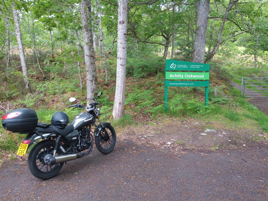 Then I headed into Muir of Ord itself and went to the new COOP to get supplies for my wee trip. I was shocked at the cost. An individual packet of crisps is now £1.20! I took West Road, the A832, out of Muir of Ord and turned left at the distillery. A short distance up this road I stopped to eat a little and just to have a break after all the excitement. It really is exciting to be driving a “new” bike.